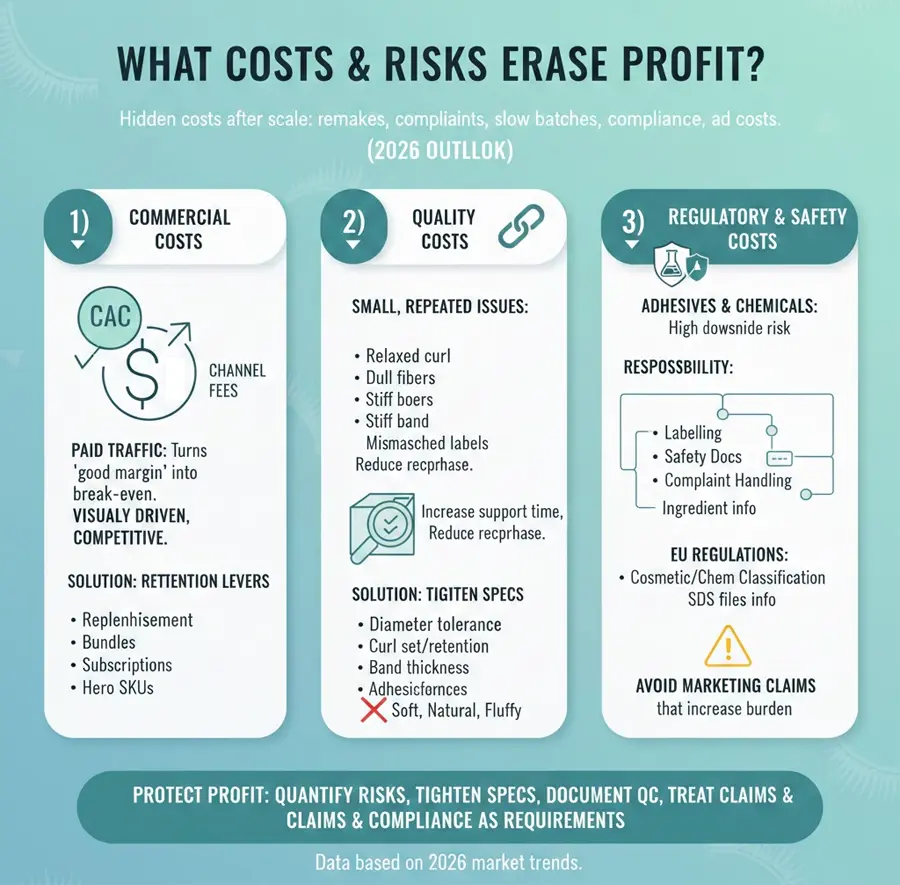Many lash businesses “sell well” but still struggle because hidden costs show up after scale: remakes, complaints, slow batches, compliance requests, and ad costs. The solution is to quantify these risks before growth.